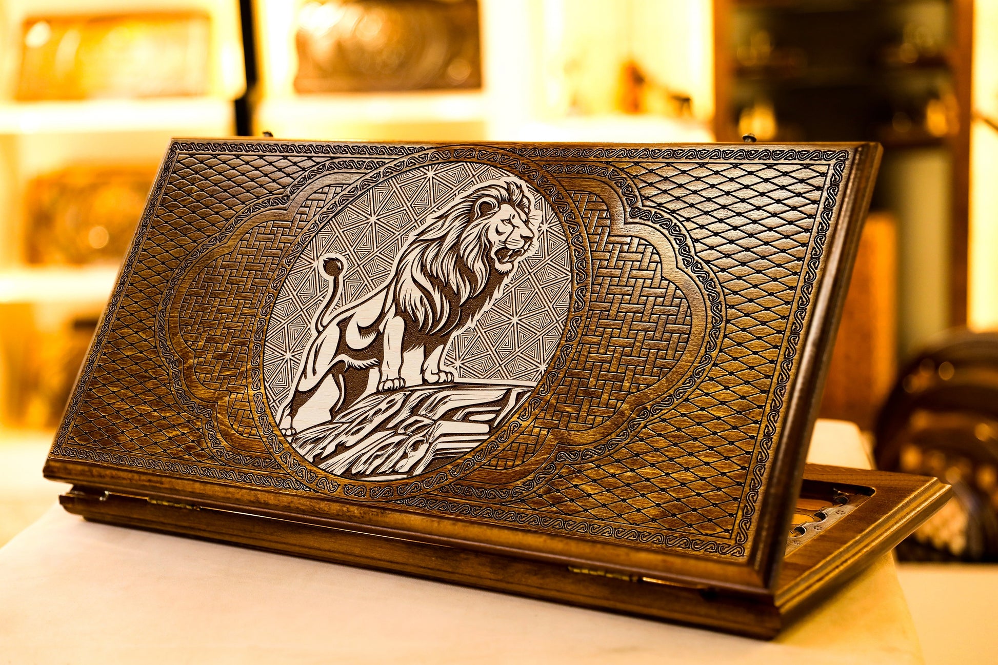 Handmade Wooden Backgammon “Lion Design” – Armenian 2-in-1 Personalized Game Set