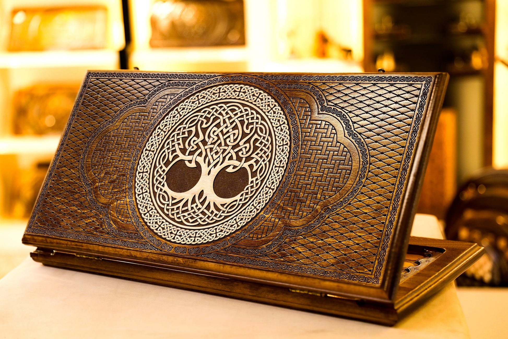 Handmade Wooden Backgammon Board — Tree of Life Design